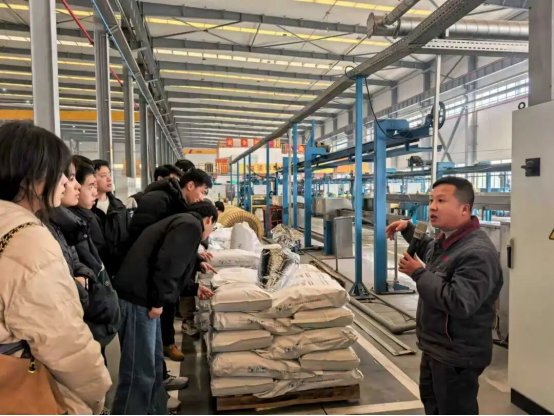 仪式结束后,核研院还组织研究生参观了渝丰科技生产基地的实验室和生产车间,同学们就生产工艺、技术难点、研发方向与企业技术人员进行了现场交流与探讨。通过观摩生产一线,同学们感悟颇深,纷纷表示要着眼现实应用解决真问题,把科研创新转化为实际生产力。